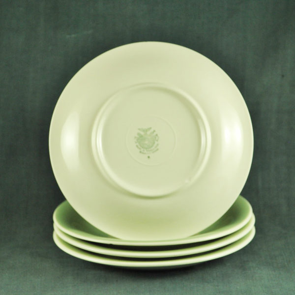 4 assiettes à dessert ca 1950 en faïence ivoire et vert amande de Villeroi et Boch en bon état ø: 192 mm