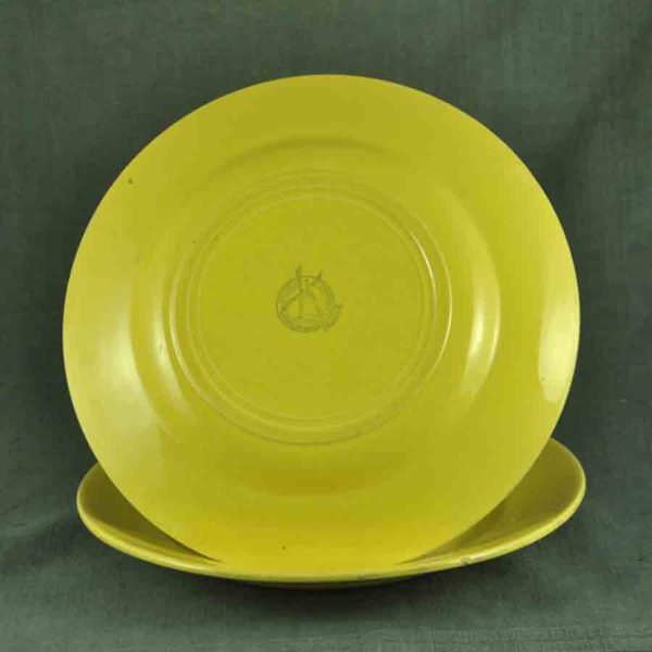 2 assiettes creuses (calotte) 1950 en faïence jaune très pale de Salins