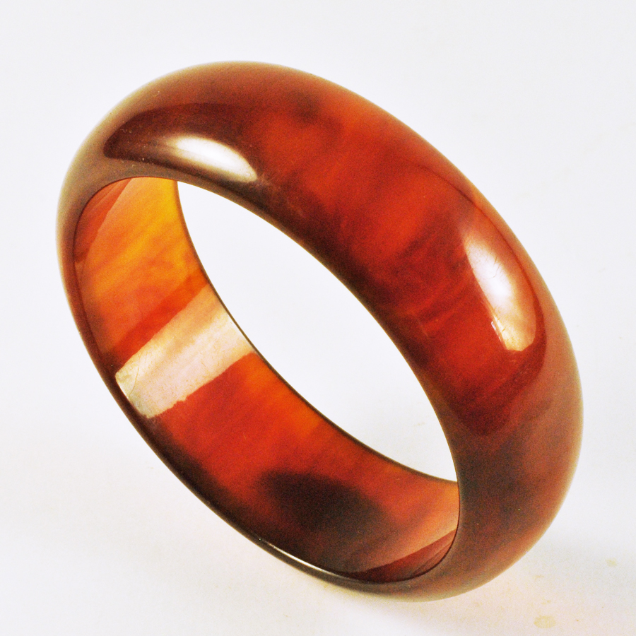 Jonc large ca 1960 en galalithe « écaille » en bon état.