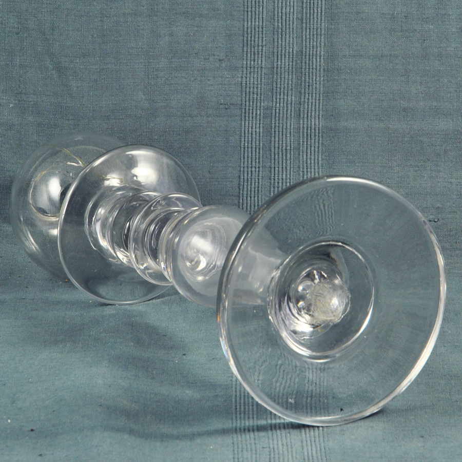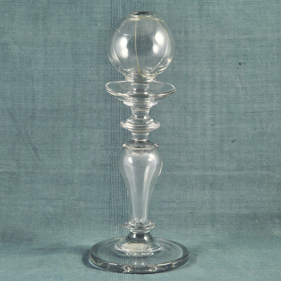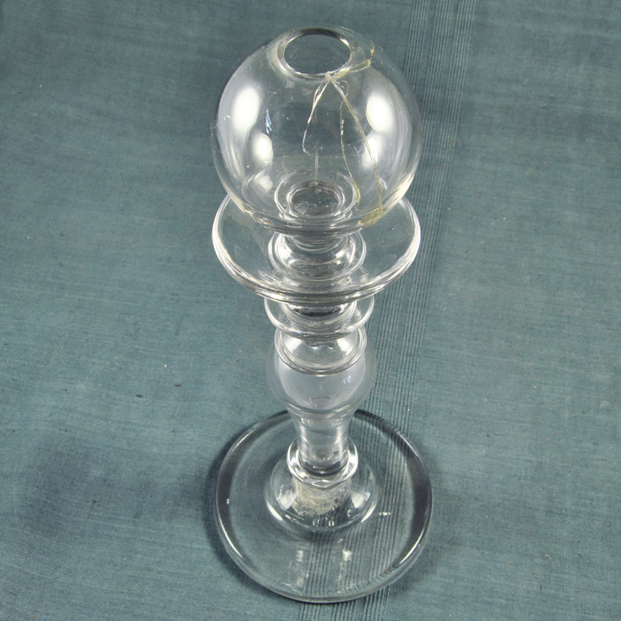 Jolie lampe à l’huile XIXe en verre soufflé. -réservoir fêlé-H.: 280 mm diam.: 110 mm