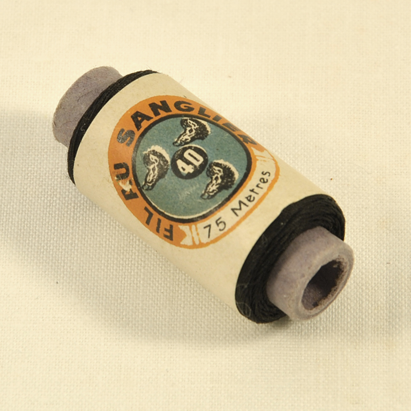 Bobine de fil noir, « Au sanglier », ca 1930 L.: 45 mmBobine de fil noir, « Au sanglier », ca 1930 L.: 45 mmBobine de fil noir, « Au sanglier », ca 1930 L.: 45 mm