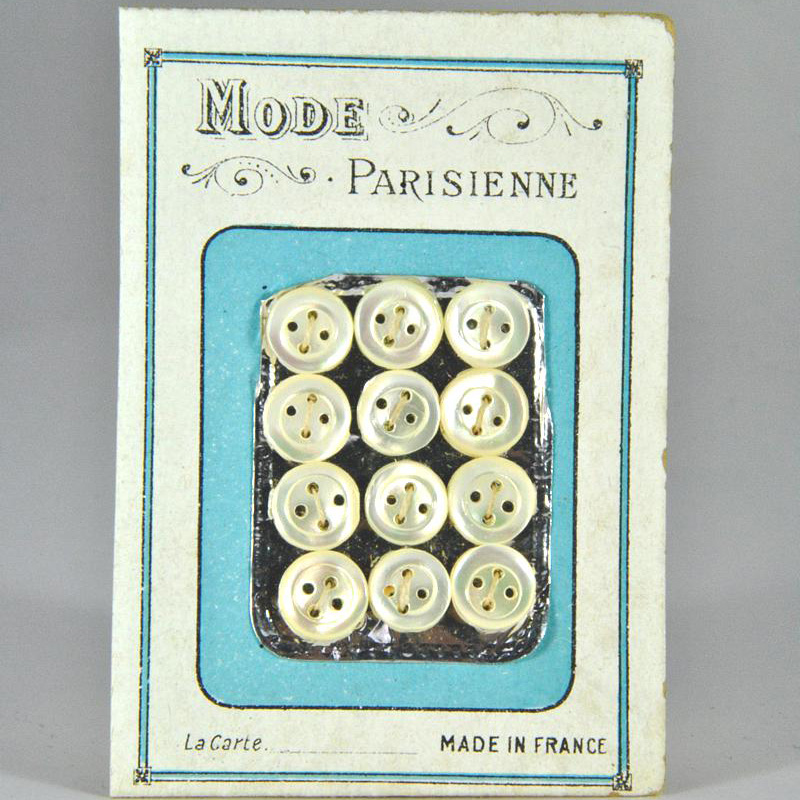 Petite carte de 12 boutons en nacre ca 1900 Mode Parisienne (8 cartes identiques) NA