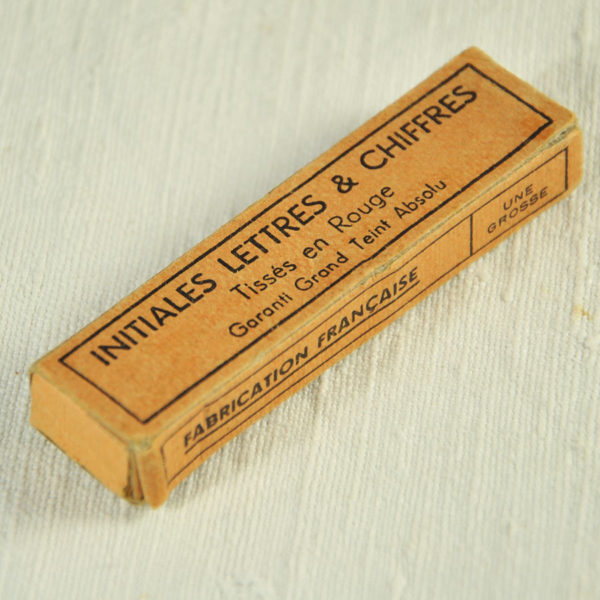 Rouleau de 13 chiffres brodé rouge ca 1930 « Textinoms » « Pour pensionnat, hôtels, linge de maison » 8 mm x 150 mm