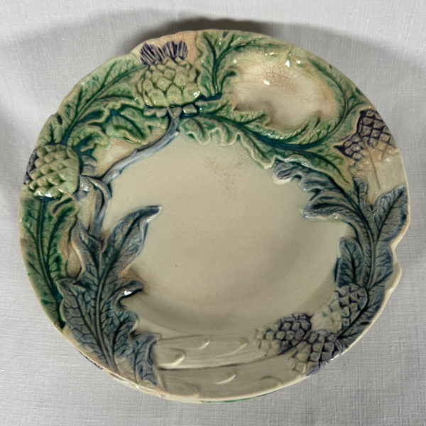 3 très belles Assiettes à asperges 1900 en barbotine en bon état – vendues à la pièce- ø: 237 mm