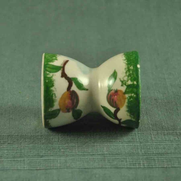 Charmant coquetier ca 1950 en faïence ivoire décoré de scènes champètres, en bon état H.: 64 mm ø: 47 mm
