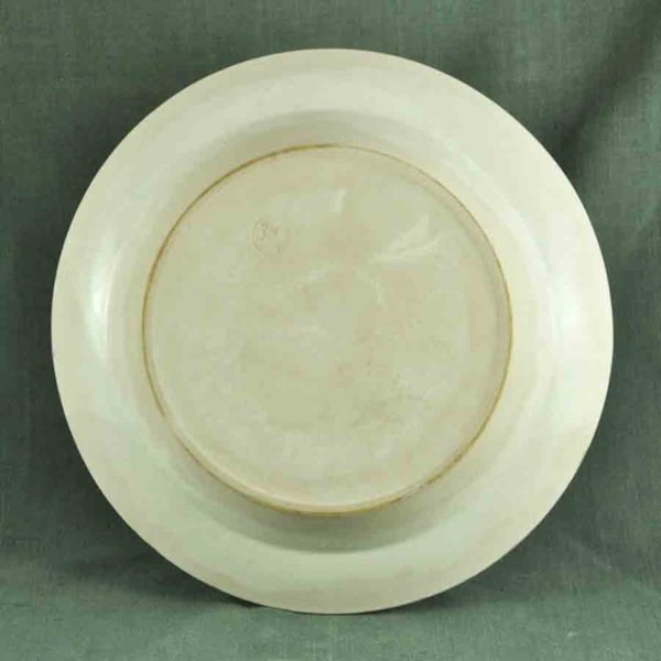 Belle assiette Cérenne ca 1930 en céramique de Vallauris Cerenne, décor méditerranéenne, bordure chantournée vert pale. ø: 230 mm