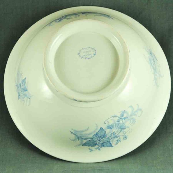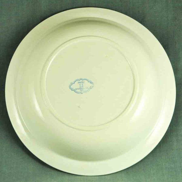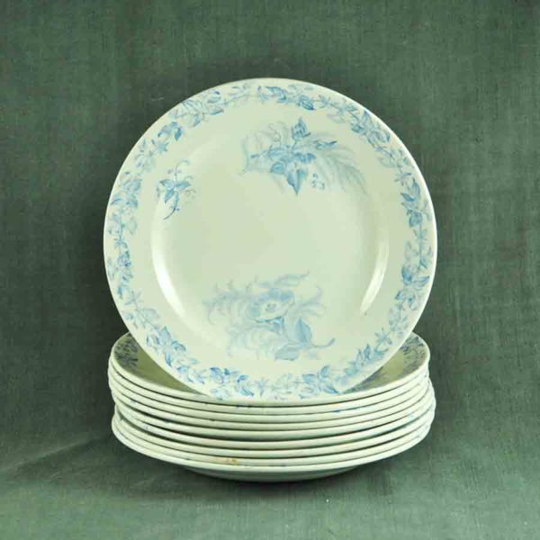 10 très jolies assiettes à dessert fin XIXème en faïence blanche de Pexonne, décor « Liserons » bleu pale, en bon état.- 2 décors différents –