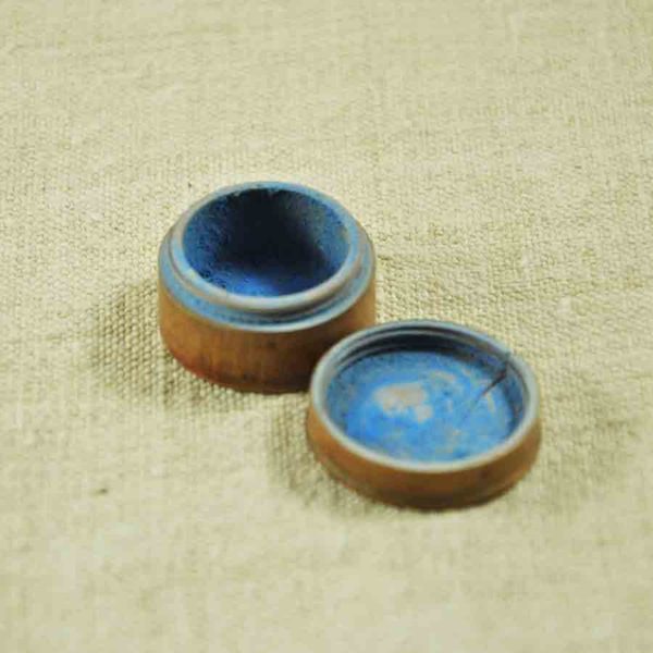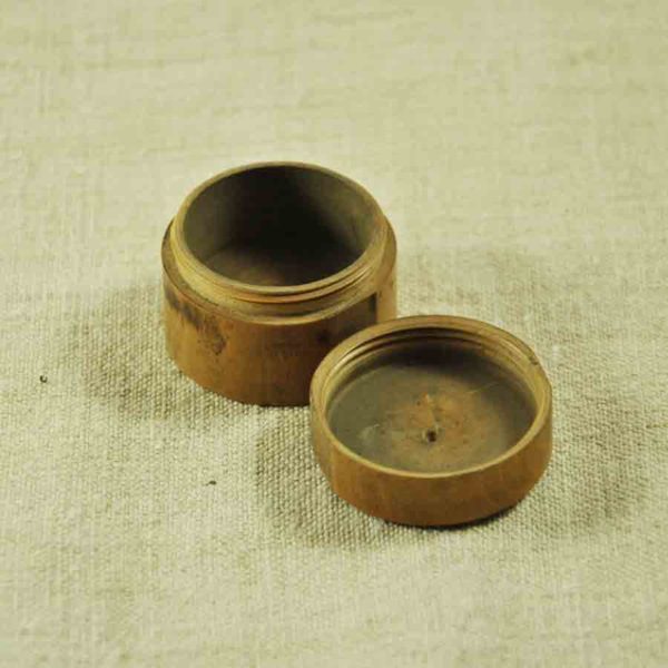 Mini-boite 1930 à pigment en buis, en bon état. H.: 10 mm ø: 30 mm
