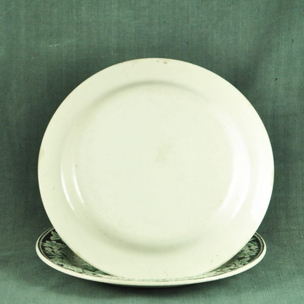 2 belles assiettes XIXème en faïence fine, scène rurale, maitre et sa servante, gris et noir, en bon état, -vendues à la pièce- ø: 210 mm