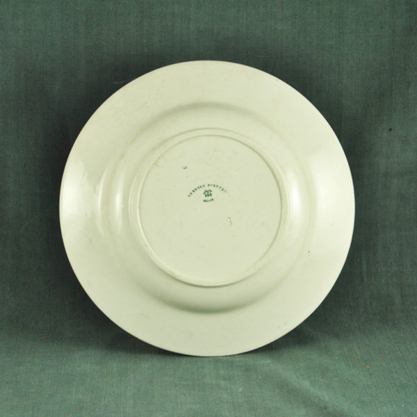 Assiette plate 1900 en faïence blanche de St Amand ( terre de fer Amandinoise), décor « Margot » floral vert foncé, en bon état. ø: 222 mm