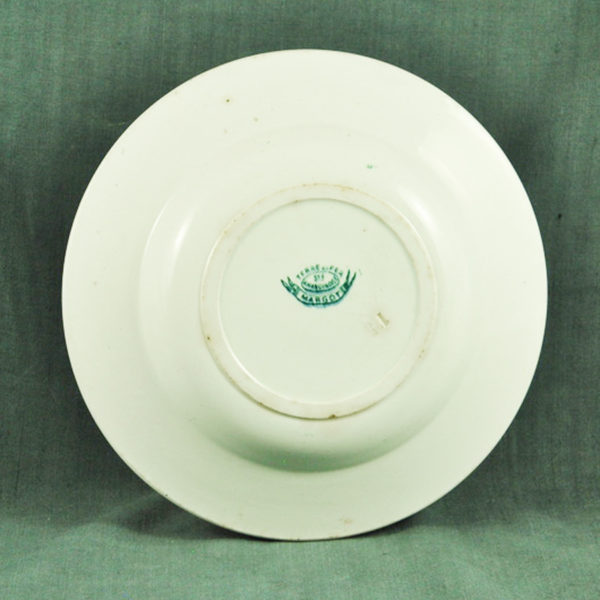Assiette creuse 1900 en faïence blanche de St Amand ( terre de fer Amandinoise), décor « Margot » floral vert foncé, en bon état. ø: 222 mm