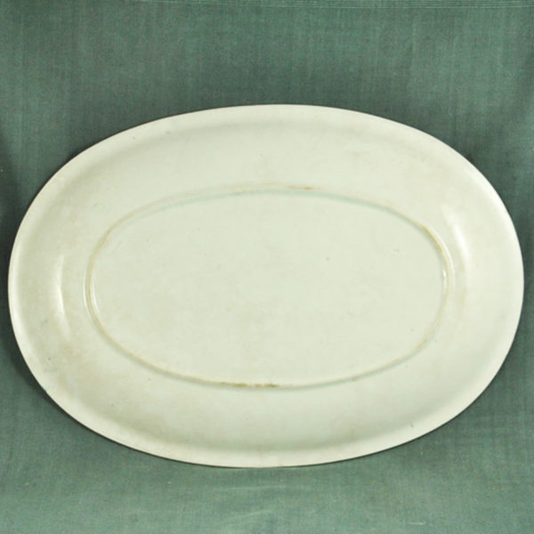 Très grand plat ovale ca 1900 en faïence blanche légèrement tachée, décor floral bleu gris, en bon état. 425 x 300 mm