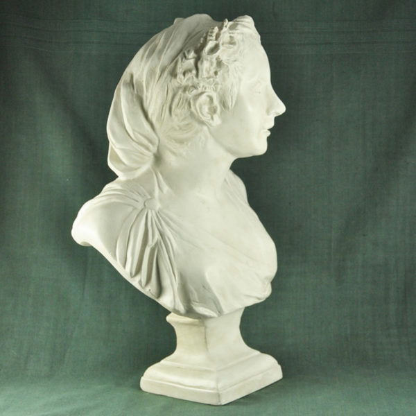 Joli buste de jeune fille fin XIXème en plâtre dur blanc cassé, en bon état. H.: 42 cm l.: 28 cm
