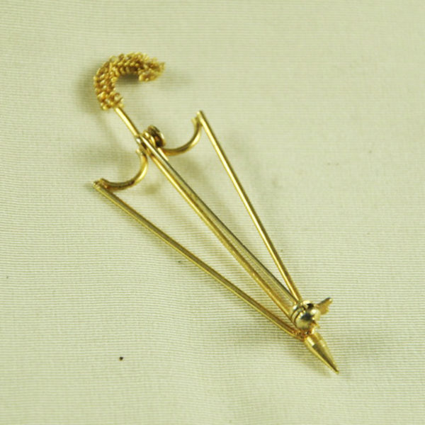 Amusante broche parapluie en laiton doré, en bon état. L.: 66 mm