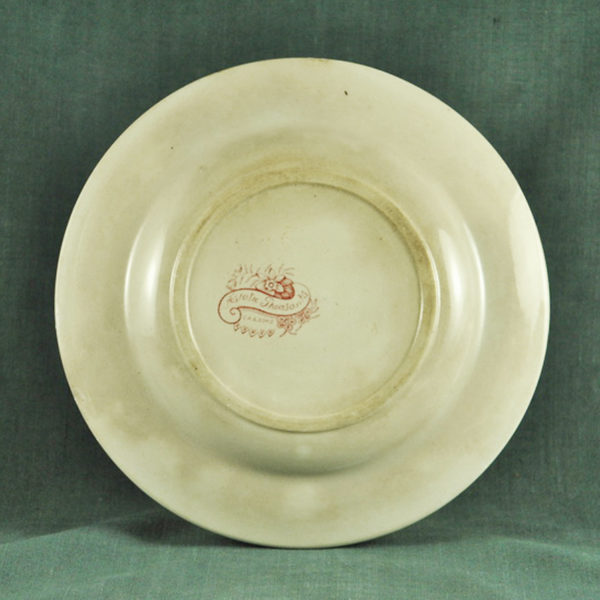 Jolie assiette victorienne ca 1880 en faïence blanche anglaise chantournée patinée CA & sons, décor « Asiatic Pheasan’ts » rose, en bon état. ø: 190 mm