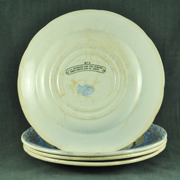 4 assiettes « Rébus » XIXème en faïence blanche de Gien en bon état. ø: 197 mm