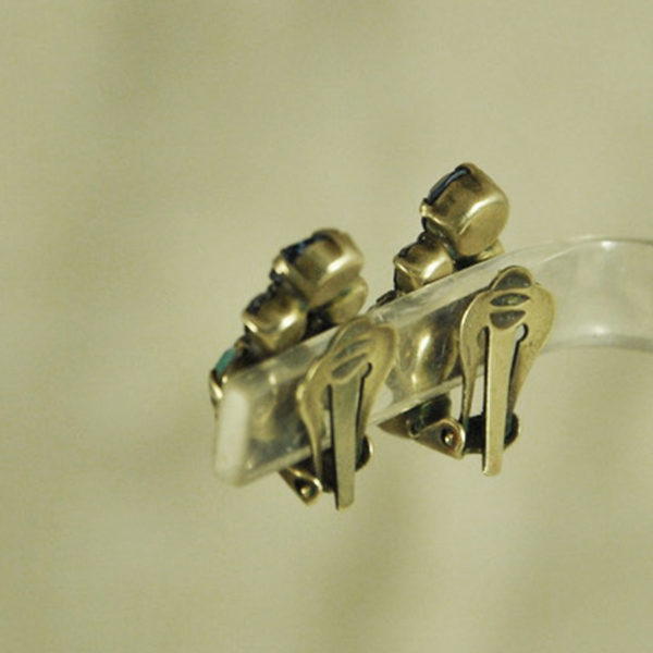 Très joli collier ca 1950, 3 rangs de perles en verre transparent, violet et en opaline blanche, fermoir en laiton pavé de strass irisé, en bon état.
