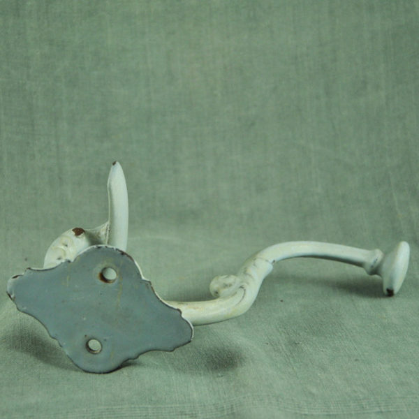 Jolie patère en fonte émaillée 1900 bleu gris en bon état L.: 180 mm prof.:160 mm