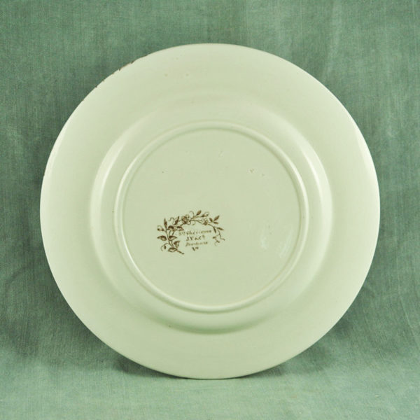 Belle assiette XIXème en faïence ivoire de Bordeaux Jules Vieillard, décor iris sépia, en bon état. ø: 227 mm