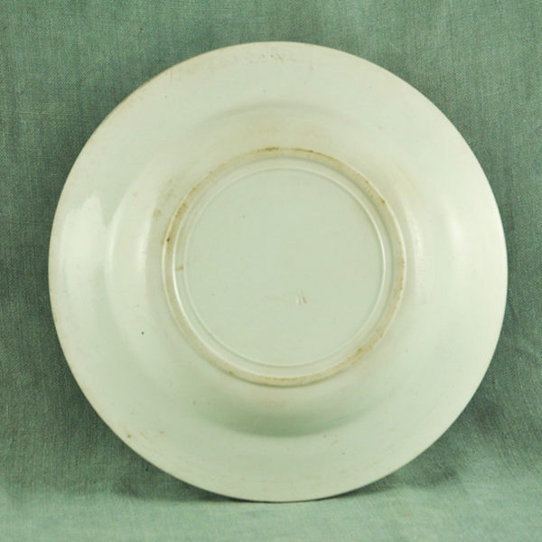 Très charmante assiette XIXème en faïence blanche, terre de fer, de Creil & Montereau, scène champêtre bleu pale en bon état. ø: 210 mm
