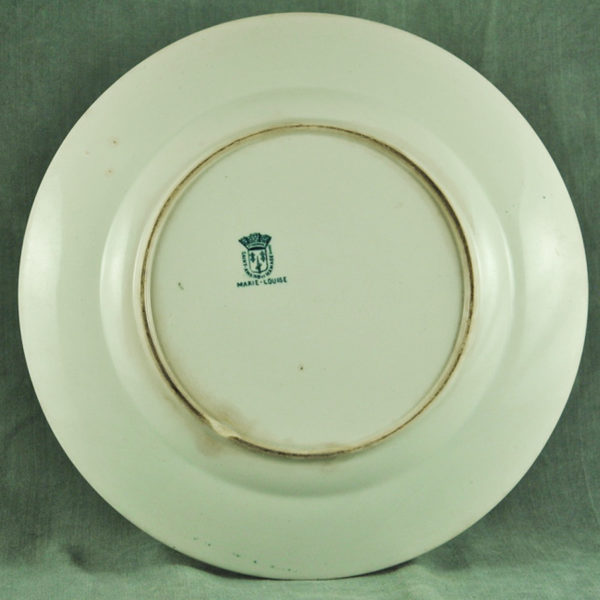 Grand plat 1900 en faïence blanche de St Amand et Hamage, décor « Marie Louise » bleu vert foncé, un peu taché. ø: 295 mm