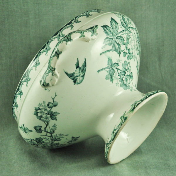 Petite soupière XIXème en faïence blanche de St Amand, décor « Aubépine » vert, en bon état. H.: 135 mm ø: 200 mm