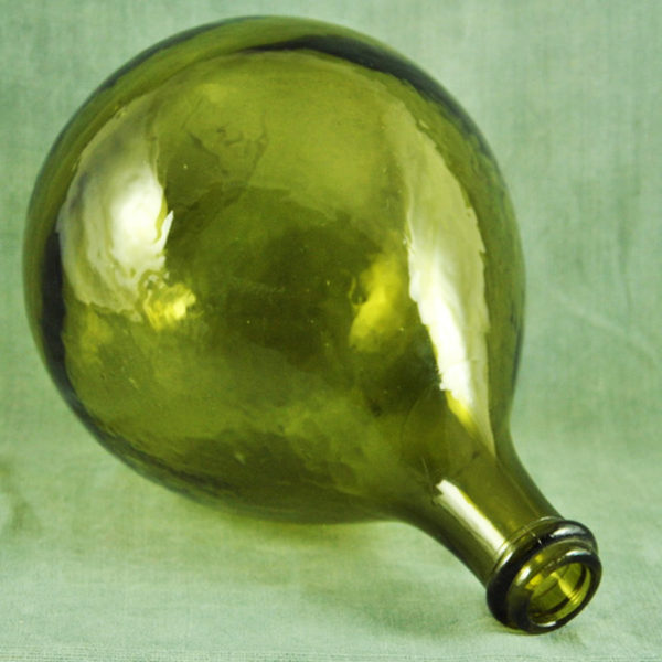 Jolie dame-Jeanne ca 1930 en verre vert olive, 3litre2, en bon état. H.: 265 mm ø: 170 mm