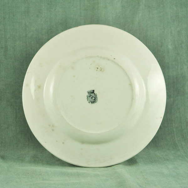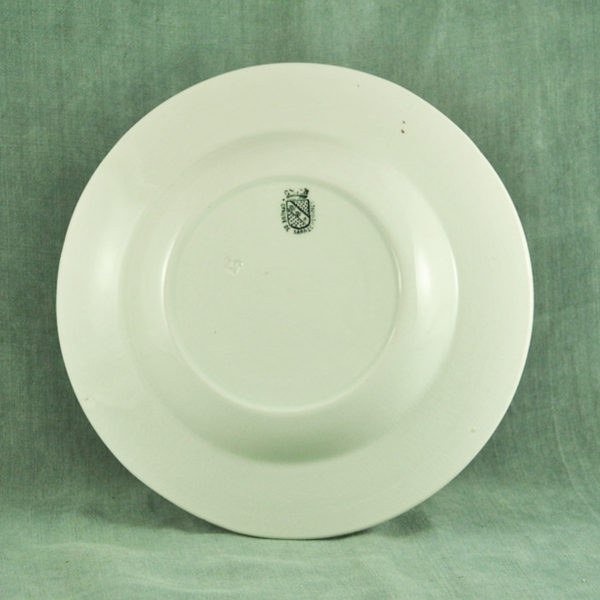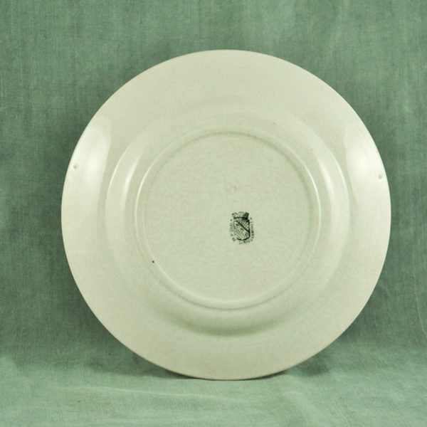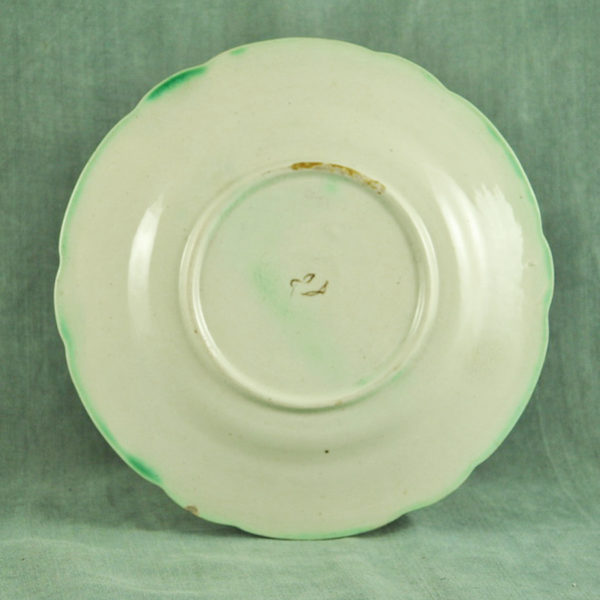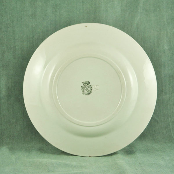 Joli plat creux 1900 en faïence blanche de St Amand, décor « Fruits » vert foncé, en bon état. ø: 262 mm
