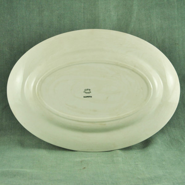 Plat ovale XIXème en faïence ivoire de Gien, décor « Monette » floral marron, en bon état. 230 x 320 mm