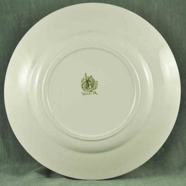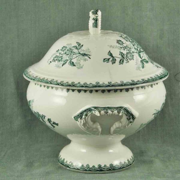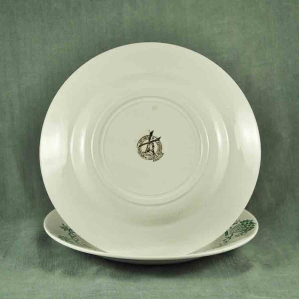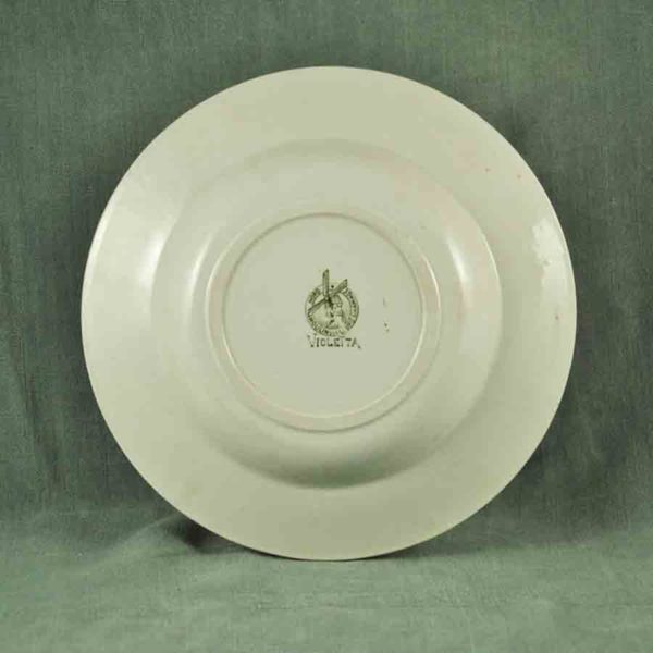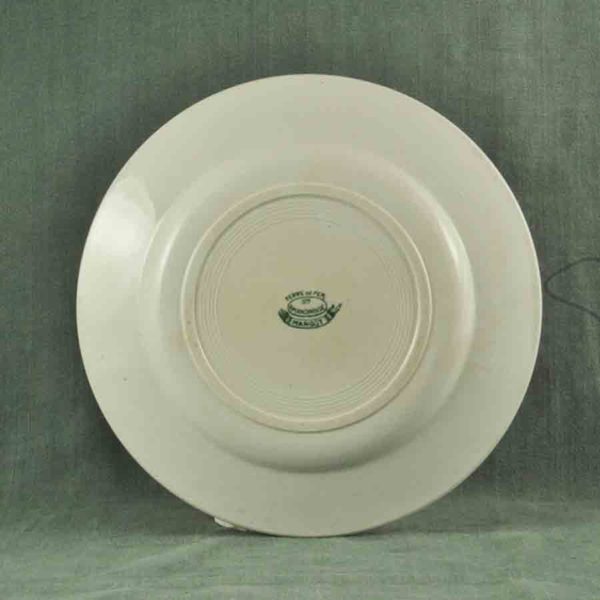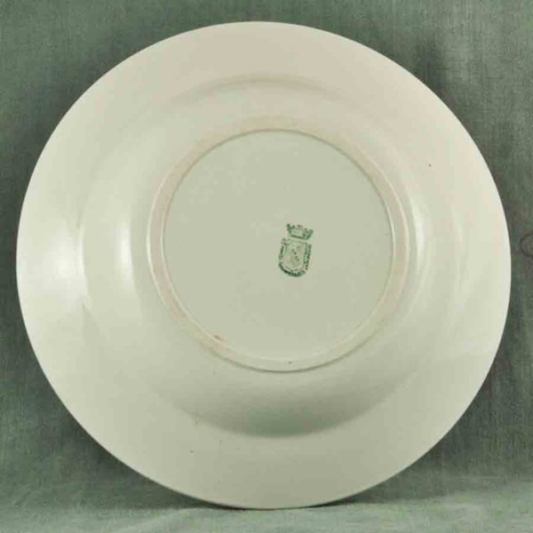 Joli plat creux 1900 en faïence blanche de St Amand bord torsadé en relief, décor : voilier encadré de fleurs bleu outremer en bon état.