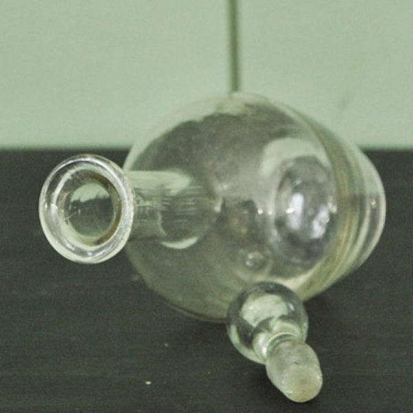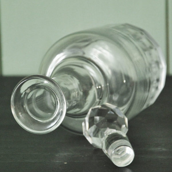 Petite carafe ca 1920 en verre et -son bouchon, en bon état.
