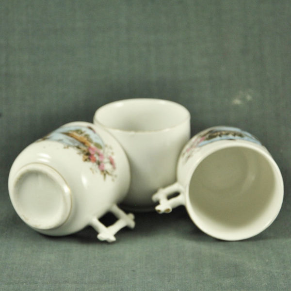 3 tasses à café 1900 en porcelaine blanche avec un décor champêtre en très bon état.