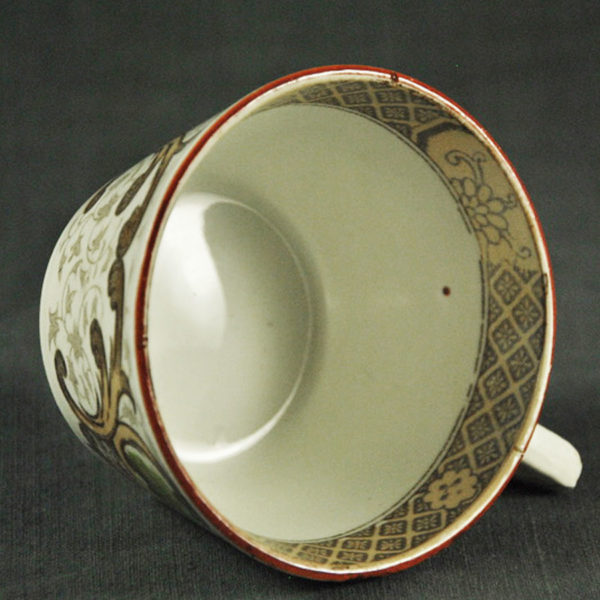 Jolie tasse XIXème orientaliste en faïence blanche, décor asiatique sépia et pastel, en bon état.