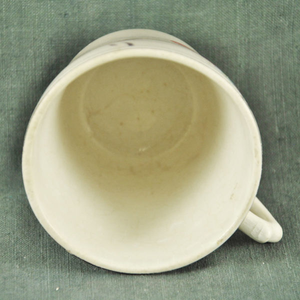 Jolie tasse XIXème en faïence ivoire de Gien, décor floral rose et bleu, en bon état.