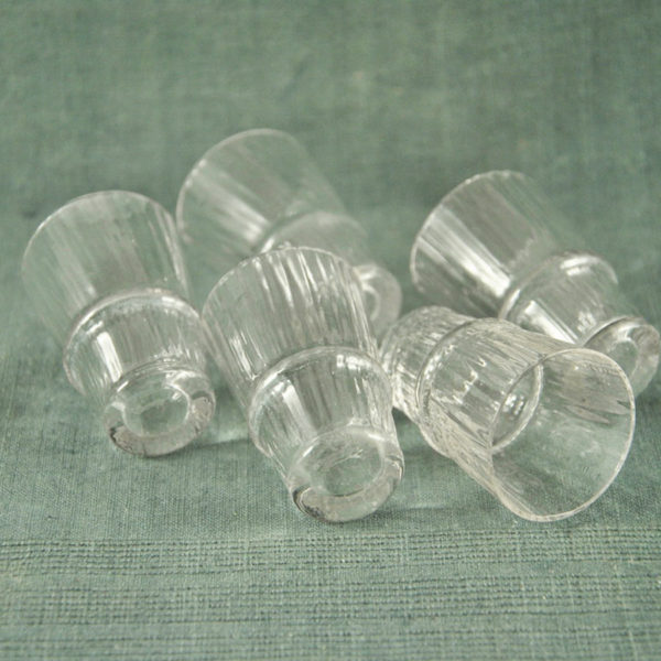 5 verres à alcool ca 1920 en verre très fin cannelé en très bon état.