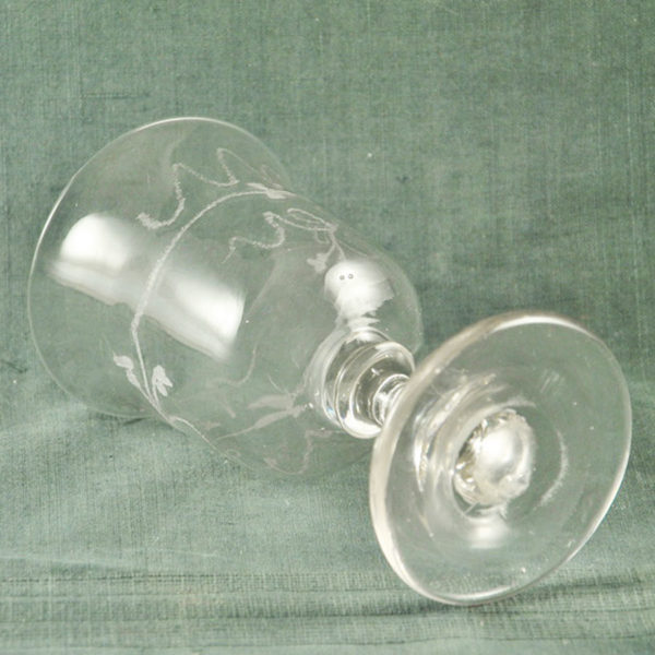 Joli petit verre à pied 1900, monogramme gravé « CV », en très bon état.