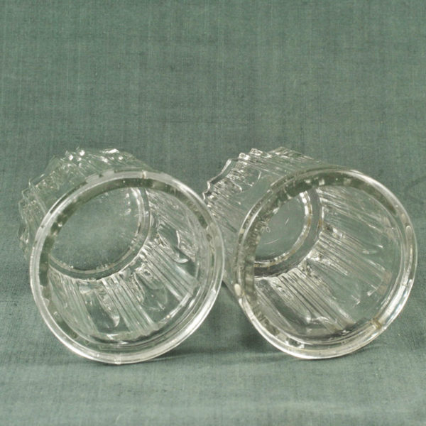 2 jolis pots à confiture 1900 en verre épais à côtes, en très bon état. -vendu à la pièce-