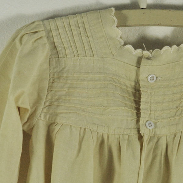 Joli tablier d’écolier ca 1920 en coton jaune pale en bon état