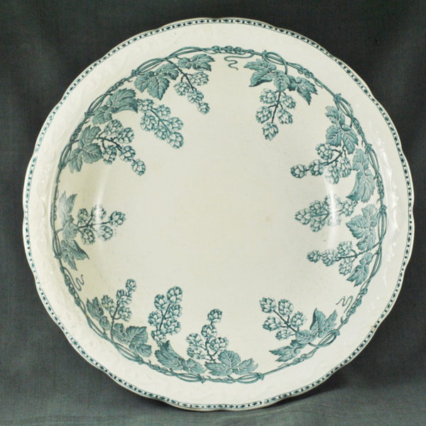 Grande cuvette XIXème en faïence blanche, décor Houblon bleu gris, frise en relief et chantournée, en bon état.