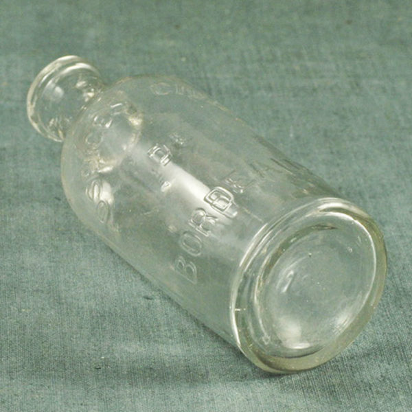 Petit flacon de pharmacie 1900 en verre, « Hospices civils de Bordeaux » en relief, en bon état.