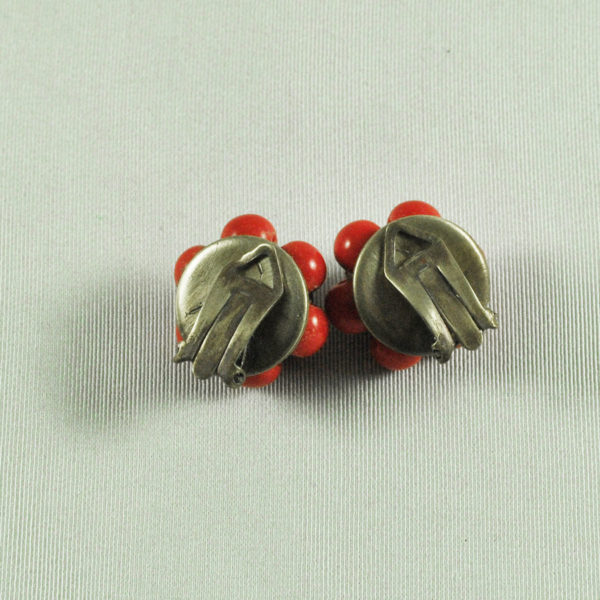 Clips d’oreilles 1950, perles en verre rouge et laiton