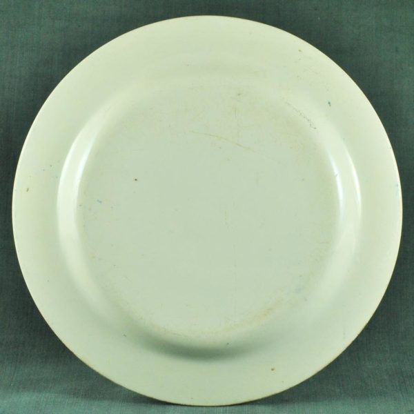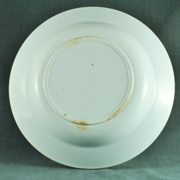 Grand plat rond et creux XIXe en faïence blanche épaisse, décor floral rose pale, en très bon état.