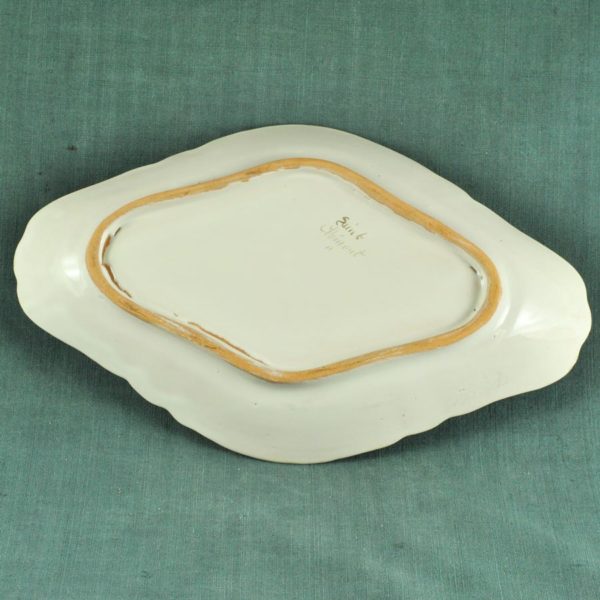 Jolie ravier 1900 en faïence épaisse de St Clément, décor floral peint à la main, filets rose foncé en très bon état.