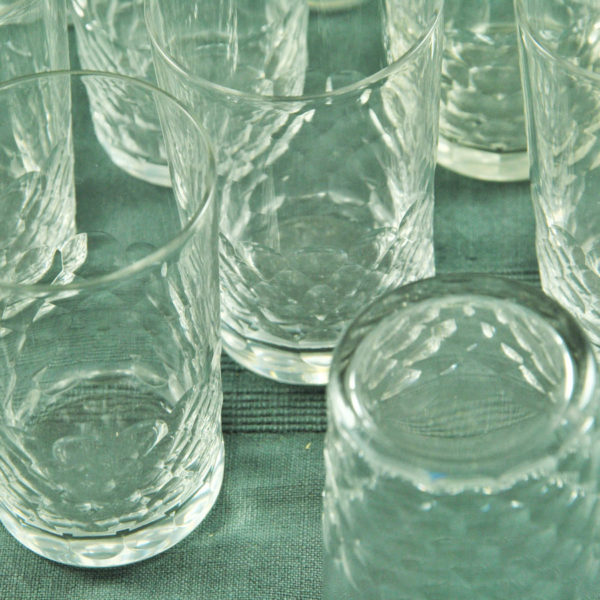 12 jolis verres à porto 1900 en cristal taillé en écailles, très belle qualité, en excellent état.