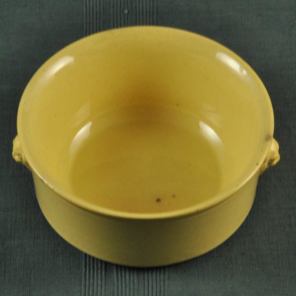 Jolie petite terrine 1900 de l’est en faïence jaune paille en très bon état. H.: 54 mm diam.: 123 mm
