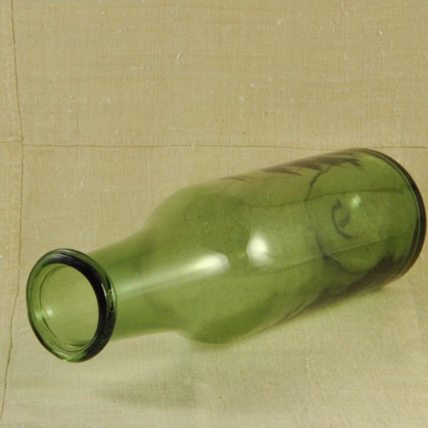 Très jolie bouteille XIXe en verre soufflé vert olive en excellent état. H.: 345 mm diam.: 100 mm