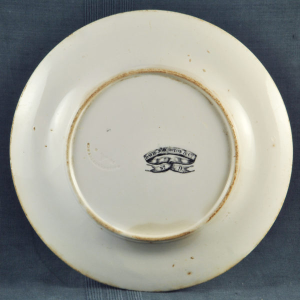 Jolie assiette romantique, ca 1840 en faïence fine de David Johnston and Co (Bordeaux) « N° 9 » série champêtre au bord d’un lac, en très bon état. diam.: 240 mm
