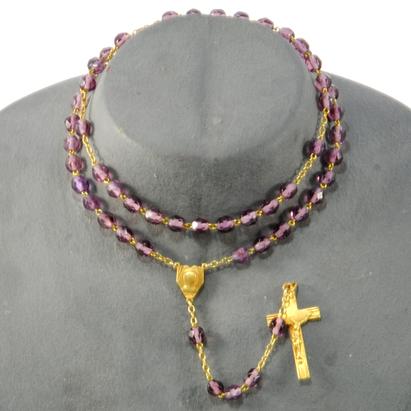 Chapelet en cristal violet clair métal plaqué or, ca 1930 L. :400 mm