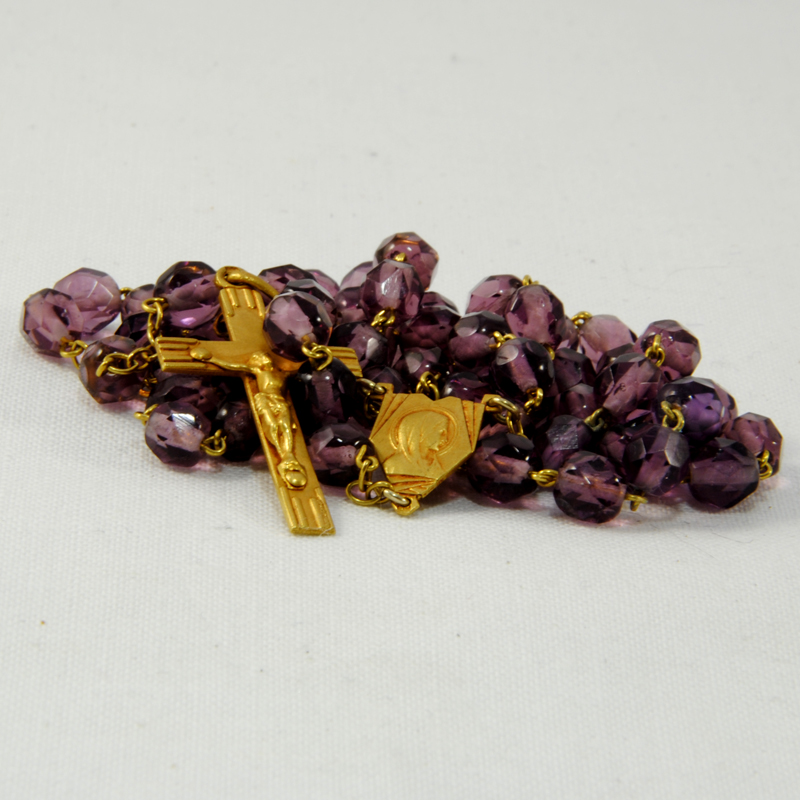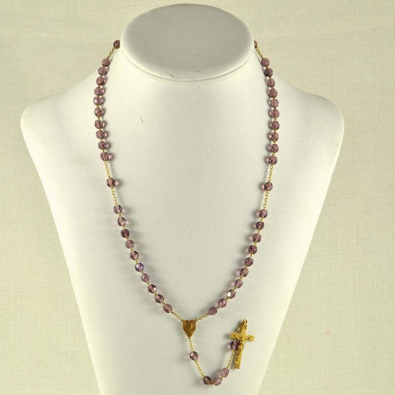 Chapelet en cristal mauve métal plaqué or, ca 1930