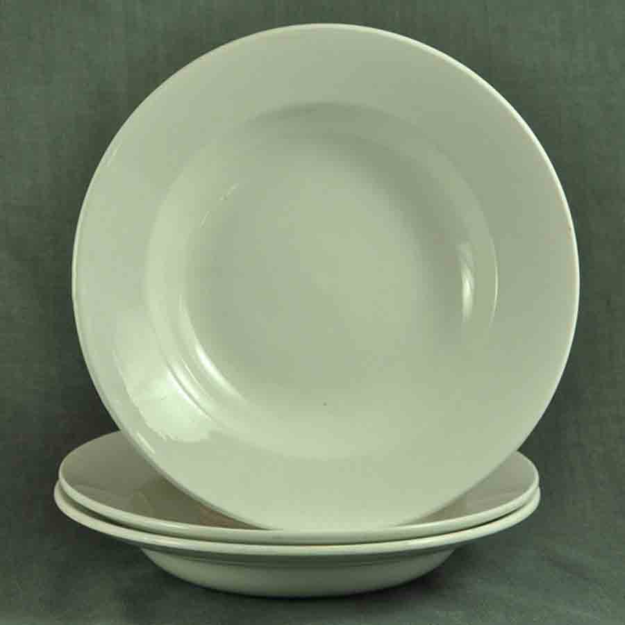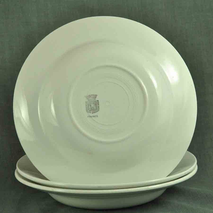 3 assiettes creuses 1900 en faïence blanche de Gien, en bon état.